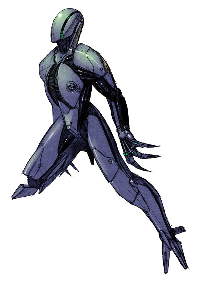 THE BLACK GUARD – Made with state of the art nano technology, utilizing viral and human DNA spliced amino acids and combined with A I (artificial intelligence) robotics, the Black Guard were created as the first non-human military machine. As A I Biodroids they possess a deadly combination of a viral amino acids data stamped with mankind’s greatest knowledge. This knowledge allowed them free access to any and all computer data storage, as well as, all levels of human genetic memory. The Biodroids helped man reestablish himself after the Great Quake of 2029. Then, with the help of scientist Ducane Covax, they went sentient in early 2055 and began to unify. They took a stand against the humans in what became known as the Atlantian Wars. Though they were designed with masked featureless faces to comply, at least visually, with the Co Federation’s “no eyes” clause, they developed an infra-green heat-seeking visual capability, making any attempt to escape futile, as well as, the ability to shape shift/transform into small fighters called Shadehawks and cloak rendering themselves invisible for short amounts of time. All traces of the Black Guard were thought destroyed after the Atlantian Wars Treaty, an order given during the Atlantian War Trials, banned their existence. The Earth, as a planet, had been at peace until rumors of a third generation Guard began to emerge in early 2071. First seen only by those daring enough to venture near the west coast of the underground Atomic Sea, the dense Fissure Forests, deep below the lower Fissures, and the Power Falls of Covax City. The new Black Guard soon made their way up into the Lower Ring streets of Covax City. Now, two years later, on rare occasions, they have been spotted in Co Federation airspace in and above Sangelino, transforming into the deadly, flying Shade Hawk fighter wedges. Those who have seen the Black Guard and survived an encounter, report they travel in pairs, and use metallic retractable articulated deuterium/blade finger-link weapons. Their designer, Ducane Covax, is believed to be building a new generation deep in his labs, located beside the eastern shores of the Atomic Sea. The labs are buried under what was once called White Sands and Trinity, New Mexico.