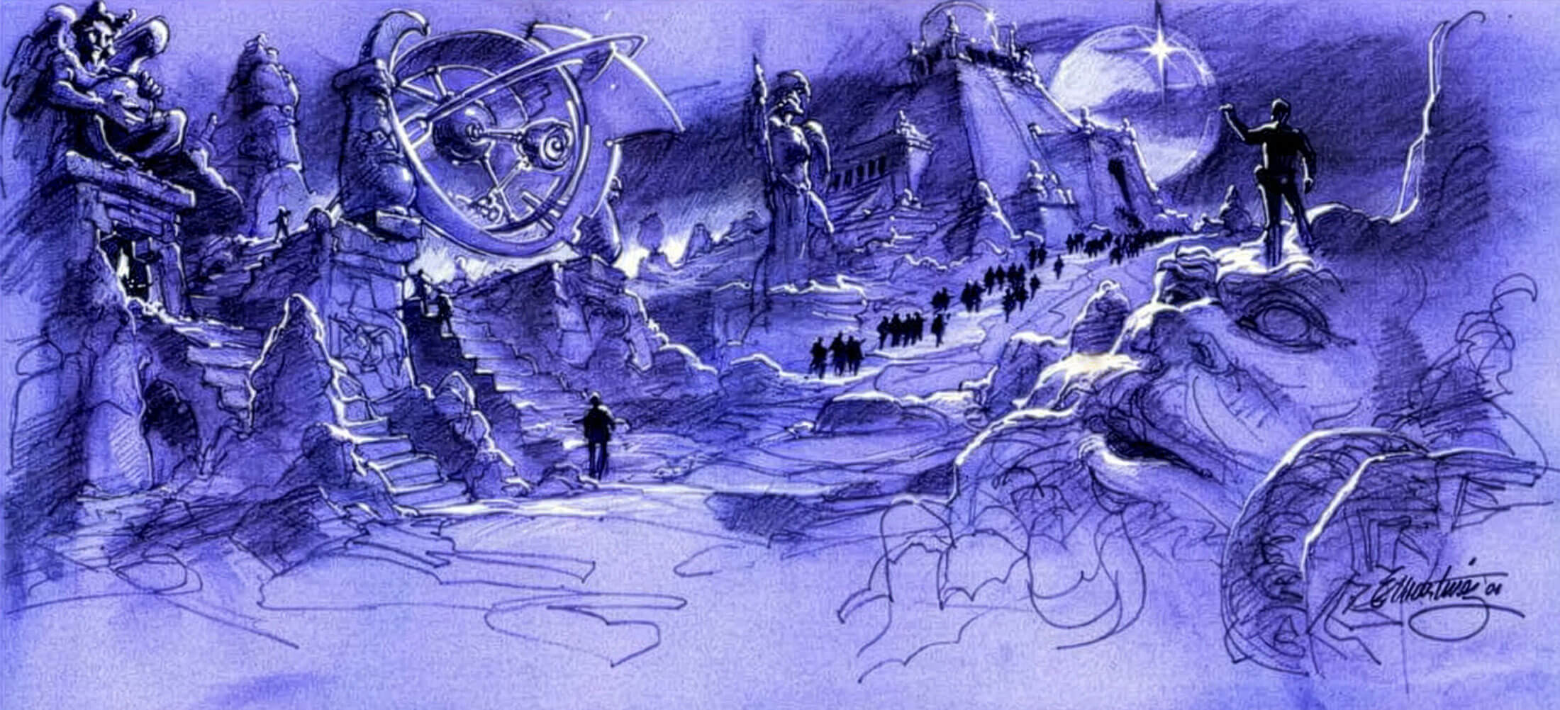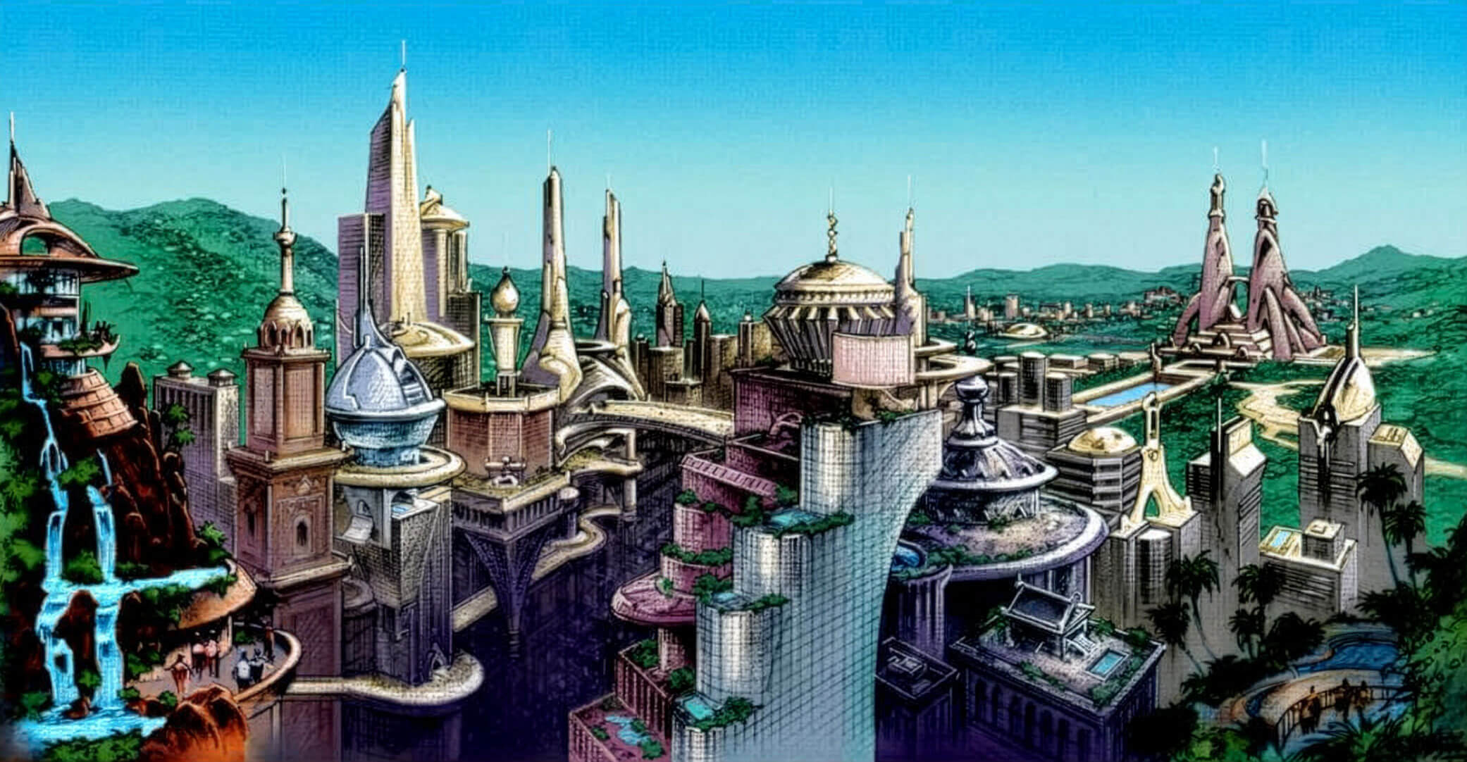 Capital of the planet Earth, Sangelino is a single megalopolis city-state consisting of the combined land mass from San Francisco to San Diego, with Old Los Angeles at its center. Also called “The Upland,” the buildings of Sangelino are graceful and gargantuan as they stretch from the mountains to the Great Fissure crack. They spill like a glass and stone waterfall of civilization over the ridge into Upper Covax City. Sangelino is one of the best examples of man’s struggle to combine his natural environment with his technological achievements.